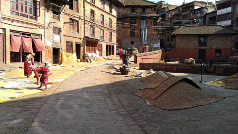 ![]() Rice drying in the sun on the streets of Bhaktapur 2013 J.H. Crawford