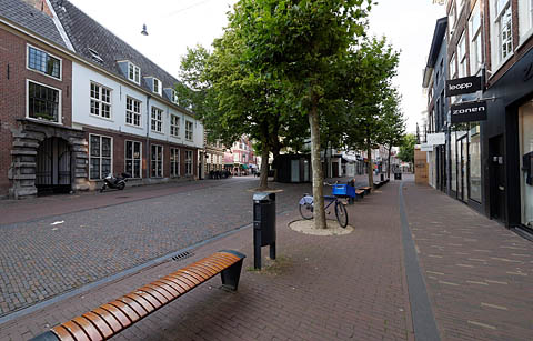 The Gedempte Oude Gracht, seen here, was a canal that was filled in a century or more ago and is today the widest street of any length in central Haarlem. Some of it is limited to bus traffic and bikes.