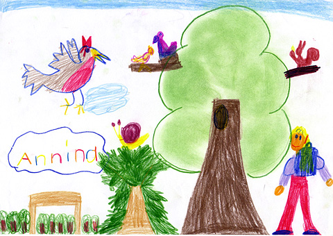 © Annina Kinder, die zu Fuß zur Schule kommen, malen eine reiche Palette von Details wie Natur, Tiere und andere Menschen. Kinder, die im Auto gefahren werden, malen die Strecke bestehend bestenfalls aus der Straße, einiger Autos, dem Schulgebäude und ihrem Zuhause.