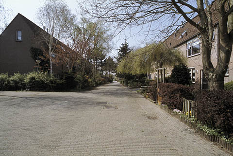 The area is difficult to illustrate. The top photo is quite characteristic of the streets onto which the houses face. The middle photo shows what could best be considered the back yards, but these vary somewhat, with this one more spacious than most. One of the large parking lots can be seen in the bottom photograph. All houses are two-stories-plus-usable-attic; the area is entirely residential. Much of the surface is paved.